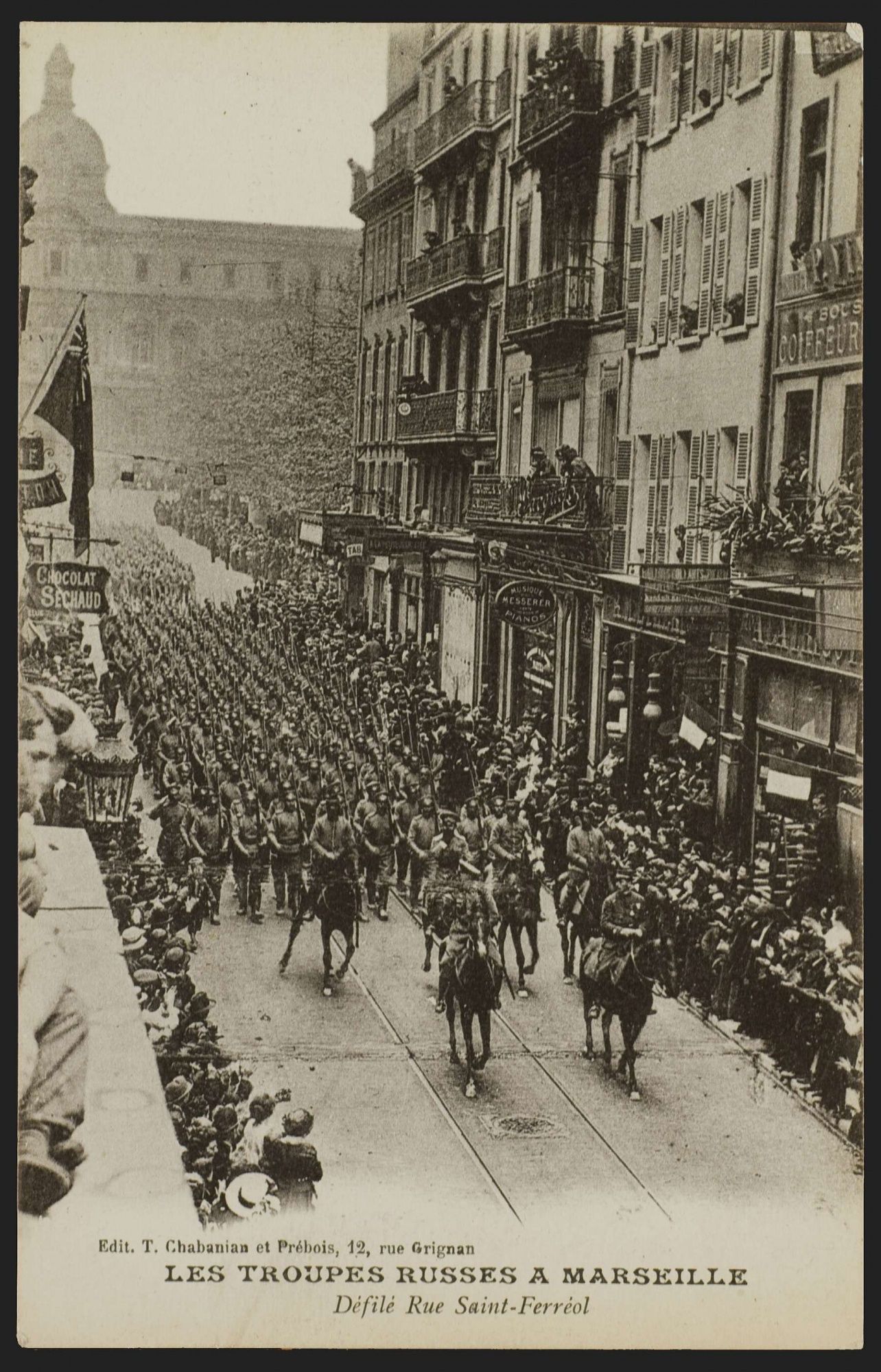 Les troupes coloniales françaises en provenance d’Afrique débarquent dès août 1914. Les tirailleurs «sénégalais» sont cantonnés à la Vieille Charité et les spahis marocains au parc du rond-point du Prado.