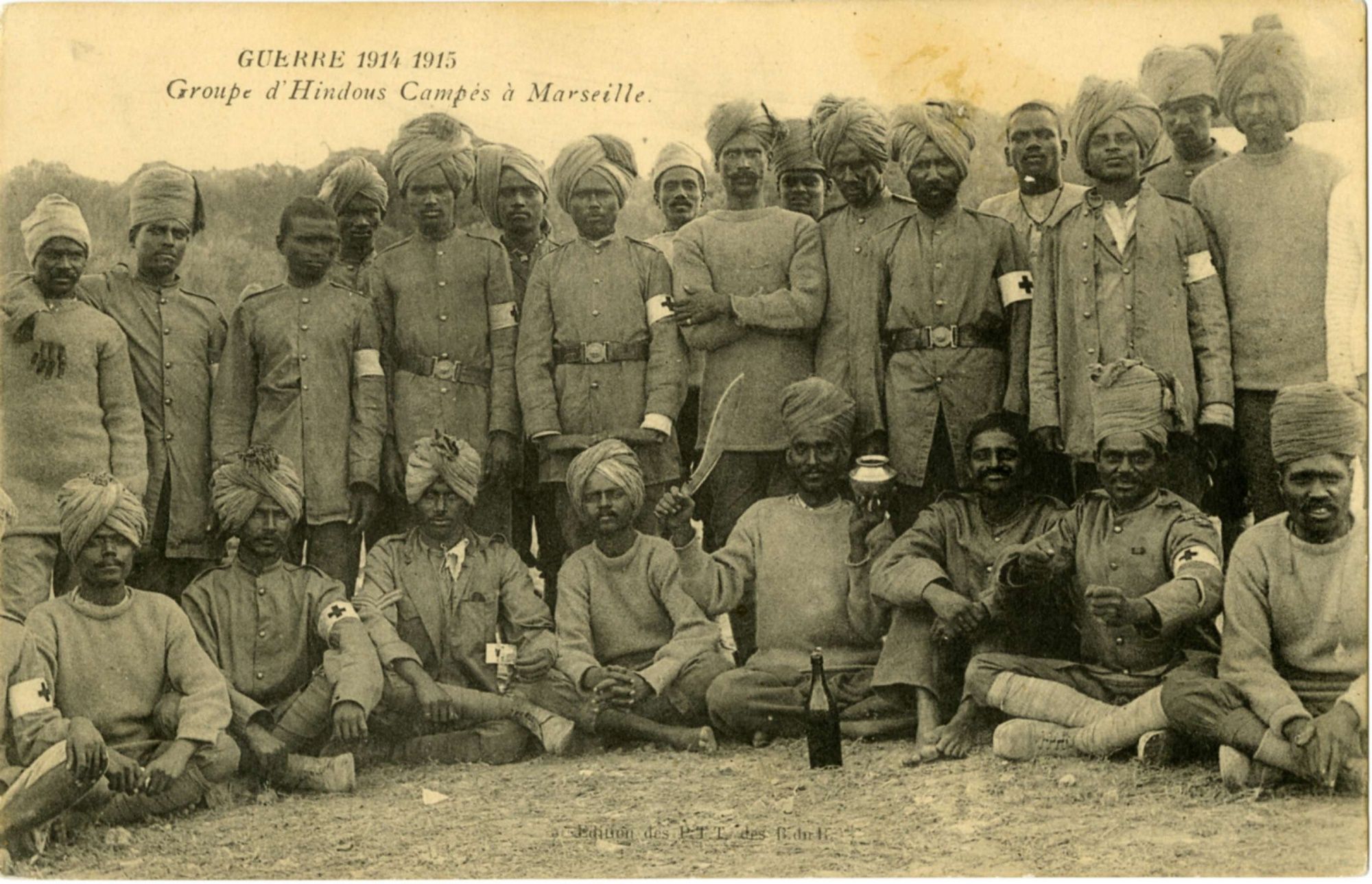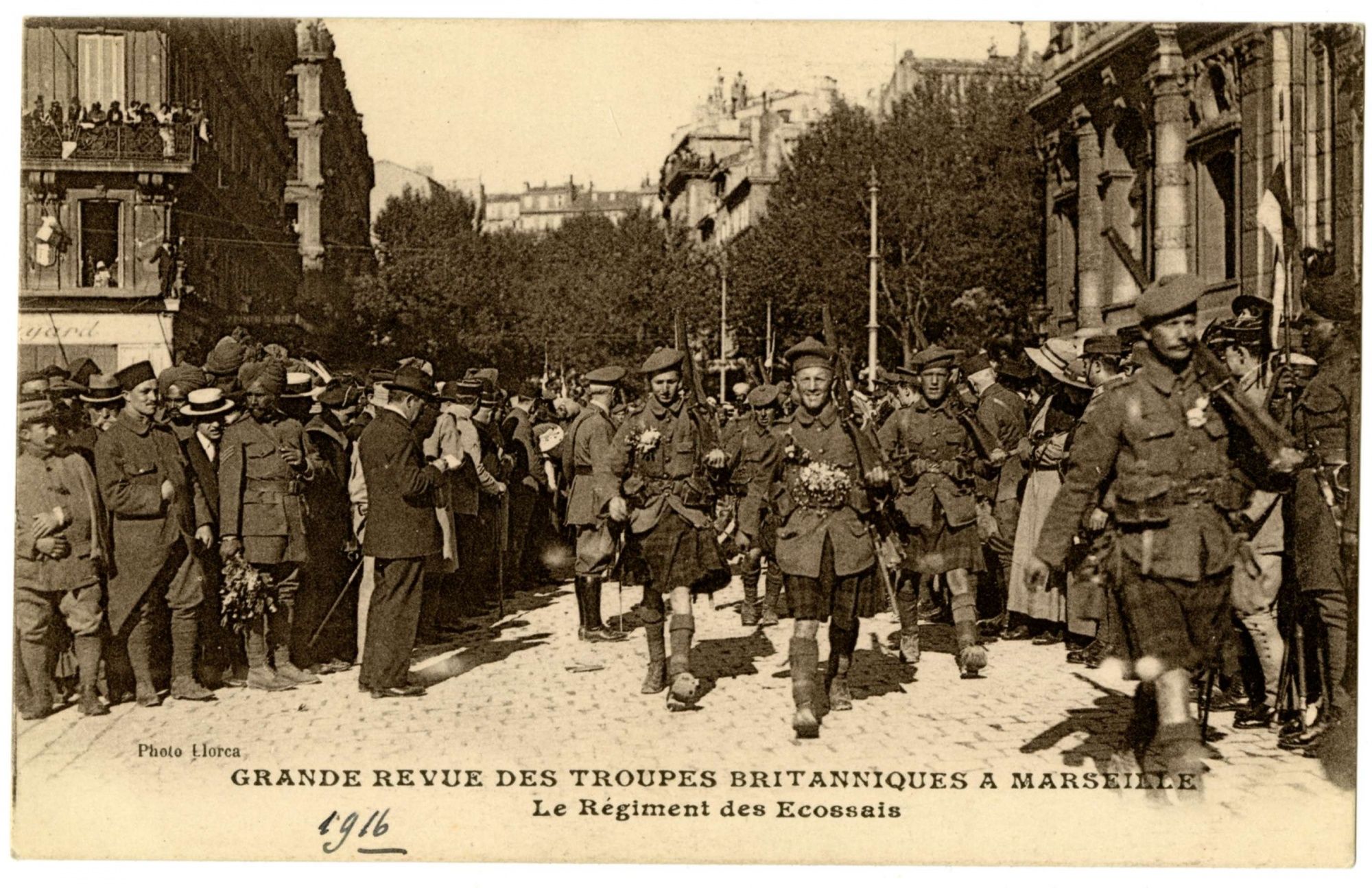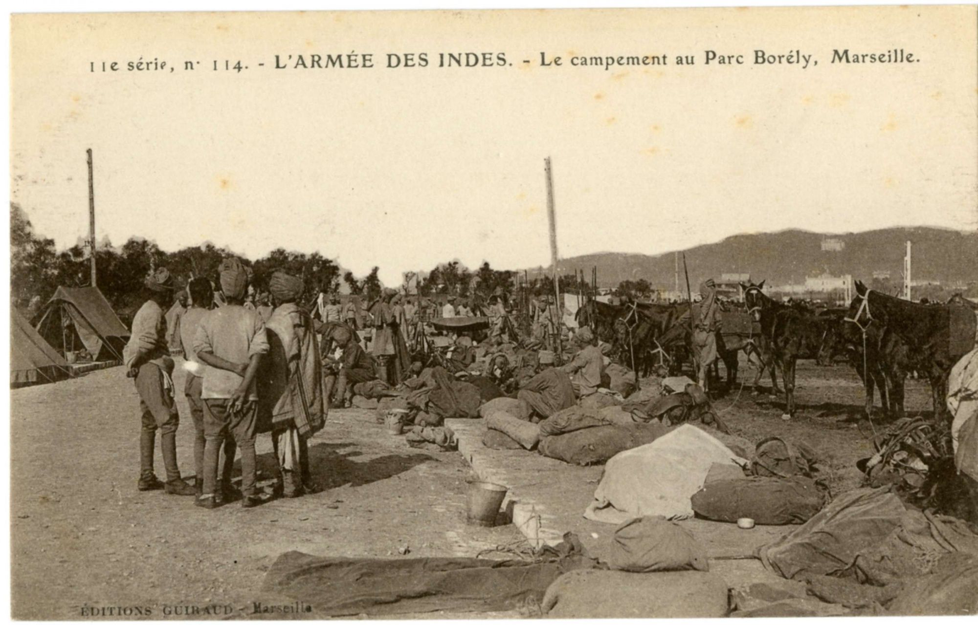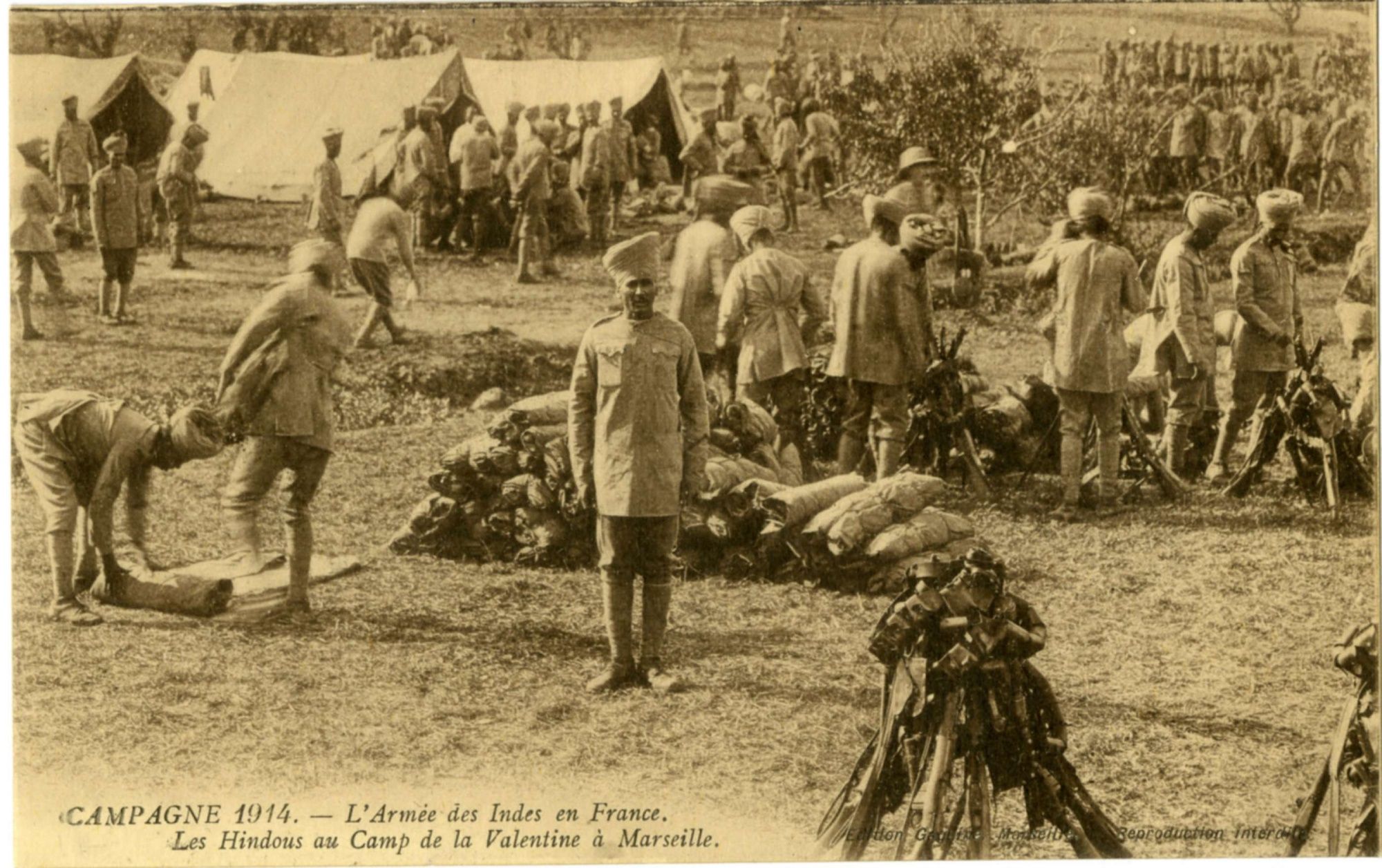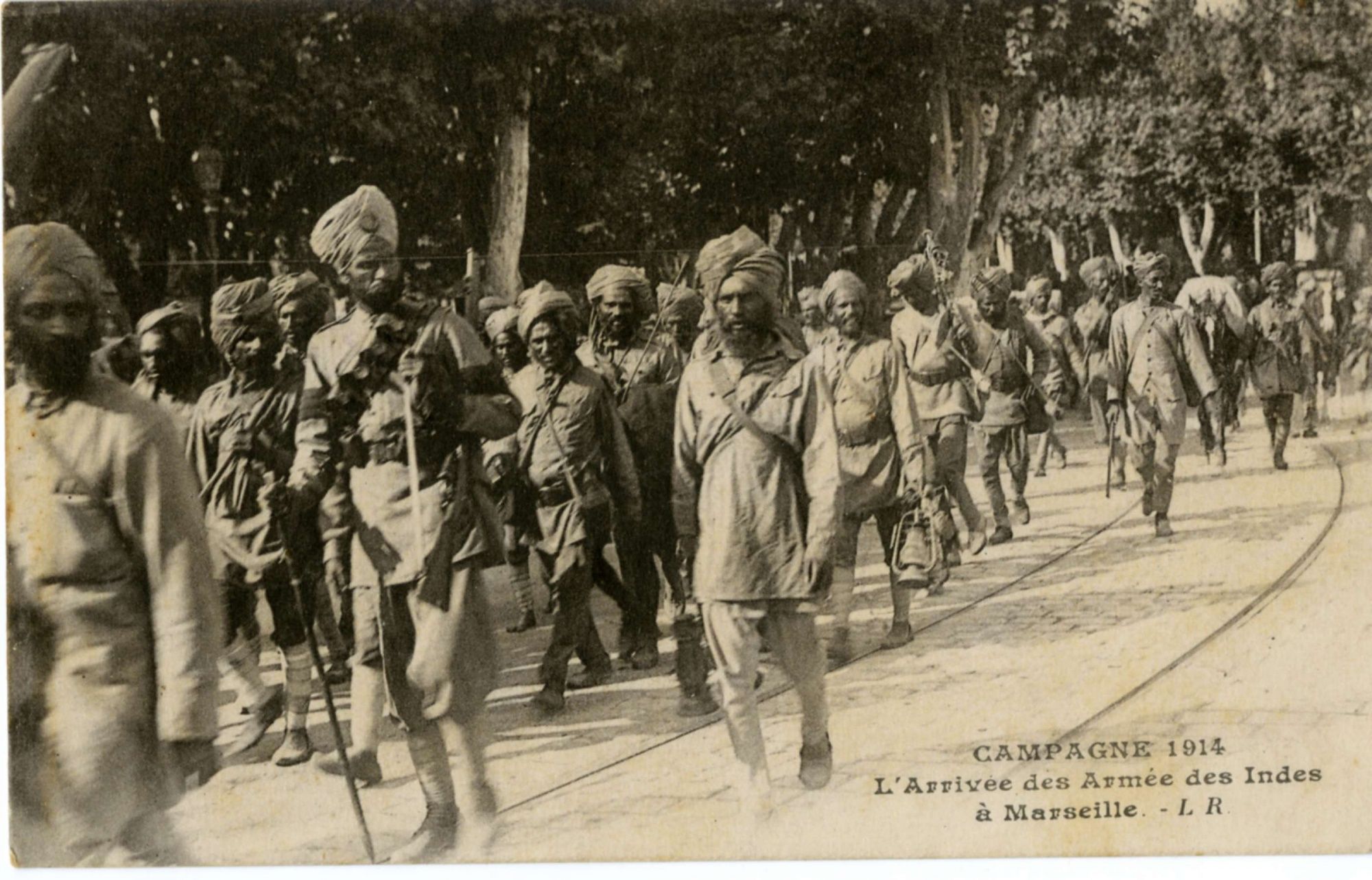 Les premiers contingents venus du Commonwealth, dont 25 000 Indiens, arrivent peu après : le parc Borély, la Valentine, la Barasse, sont autant de bases de l’Empire britannique dont l’exotisme suscite la curiosité.