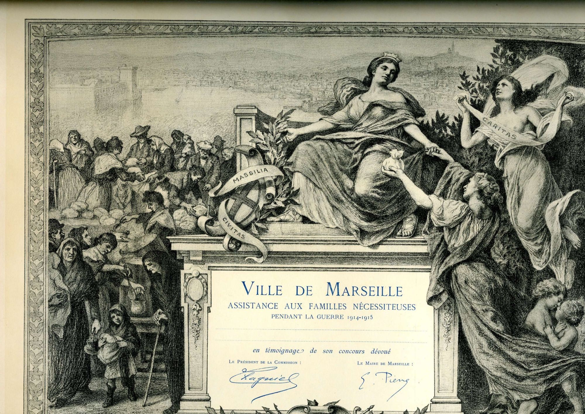 Dès le début de la guerre, Marseille accueille de nombreux réfugiés : familles repliées des régions envahies du Nord et de l’Est ou de Belgique à partir de septembre 1914, Alsaciens, Arméniens échappés des massacres de 1915, Serbes et Monténégrins en 1916, Parisiens évacués au printemps 1918. Ce sont entre 10 et 20 000 personnes qu’il faut secourir, loger, faire travailler. Des hôtels sont réquisitionnés, ainsi que des établissements scolaires qui, eux, servent plutôt d’hôpitaux auxiliaires.