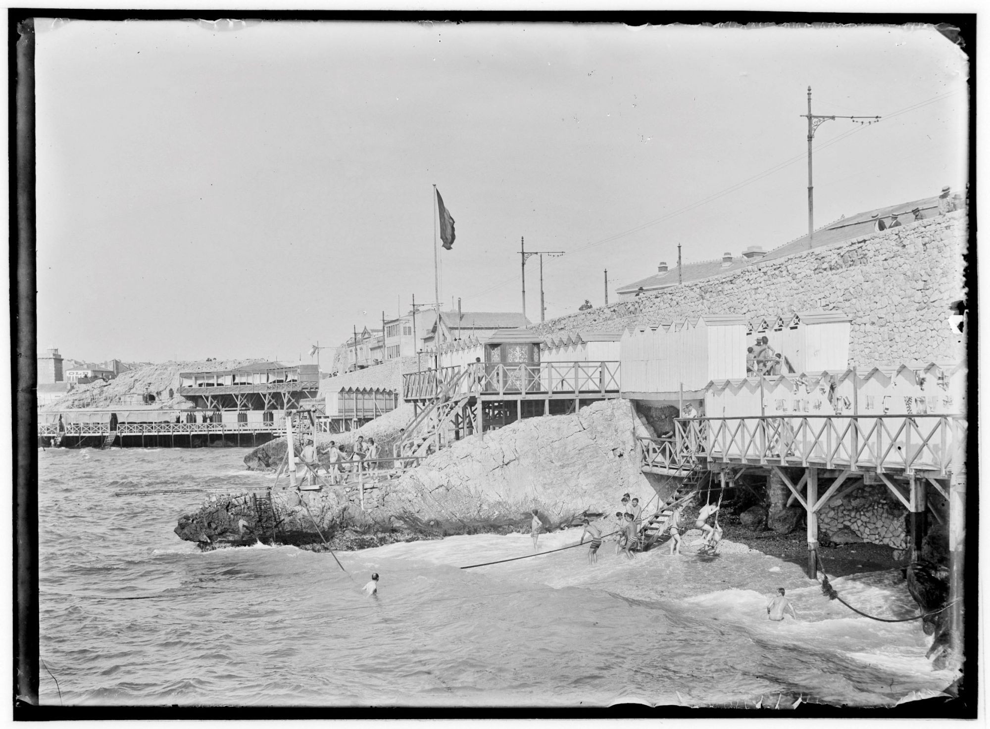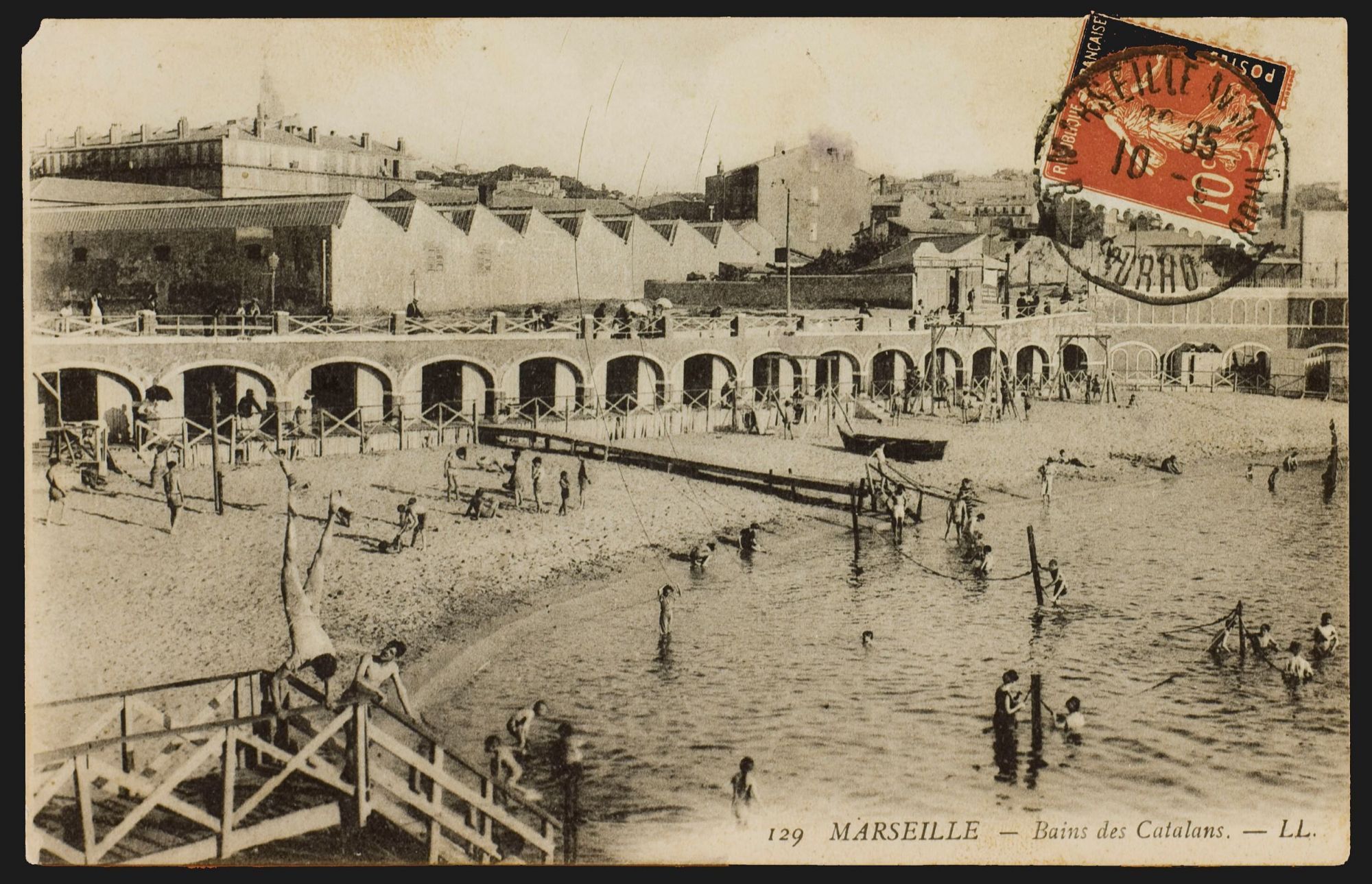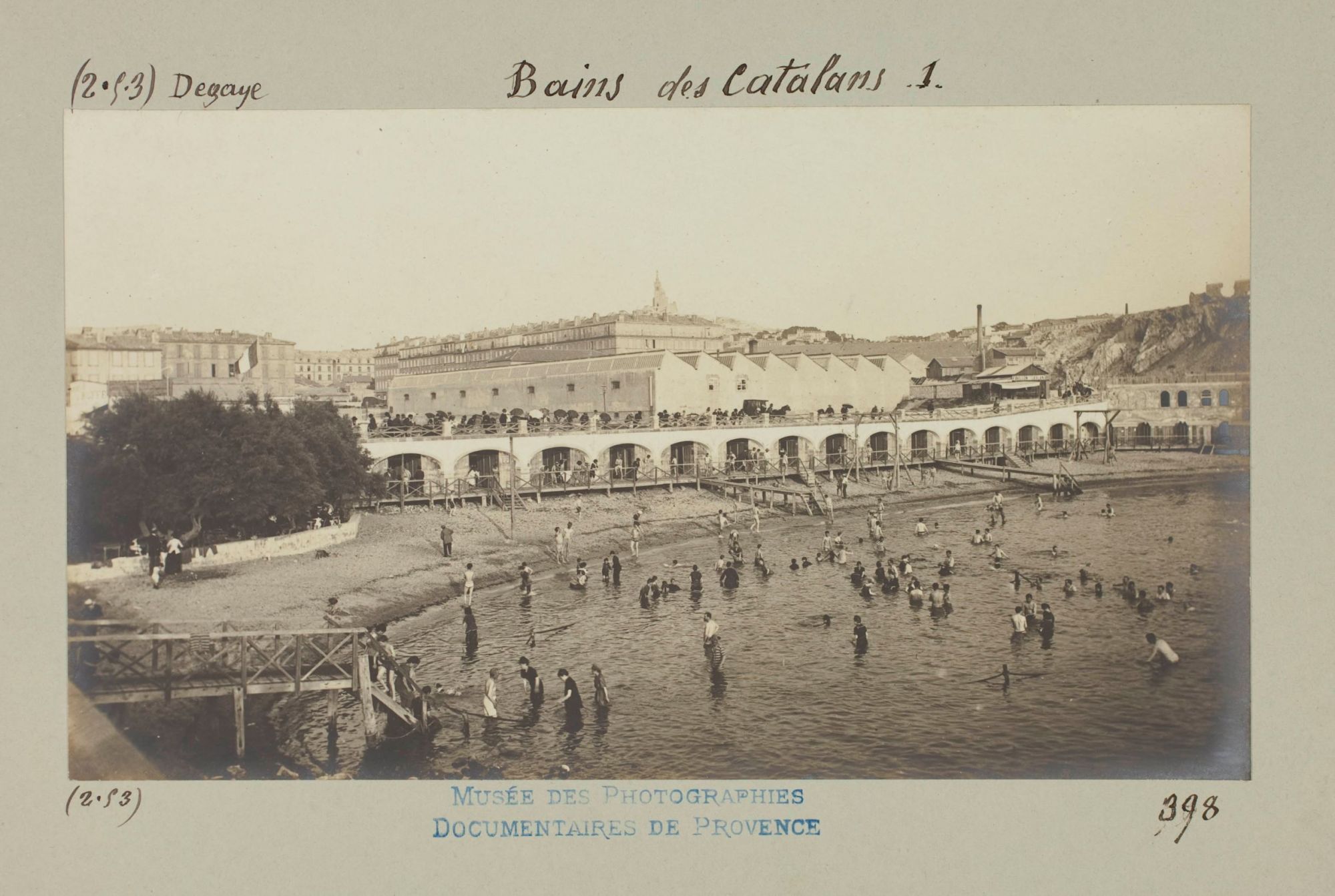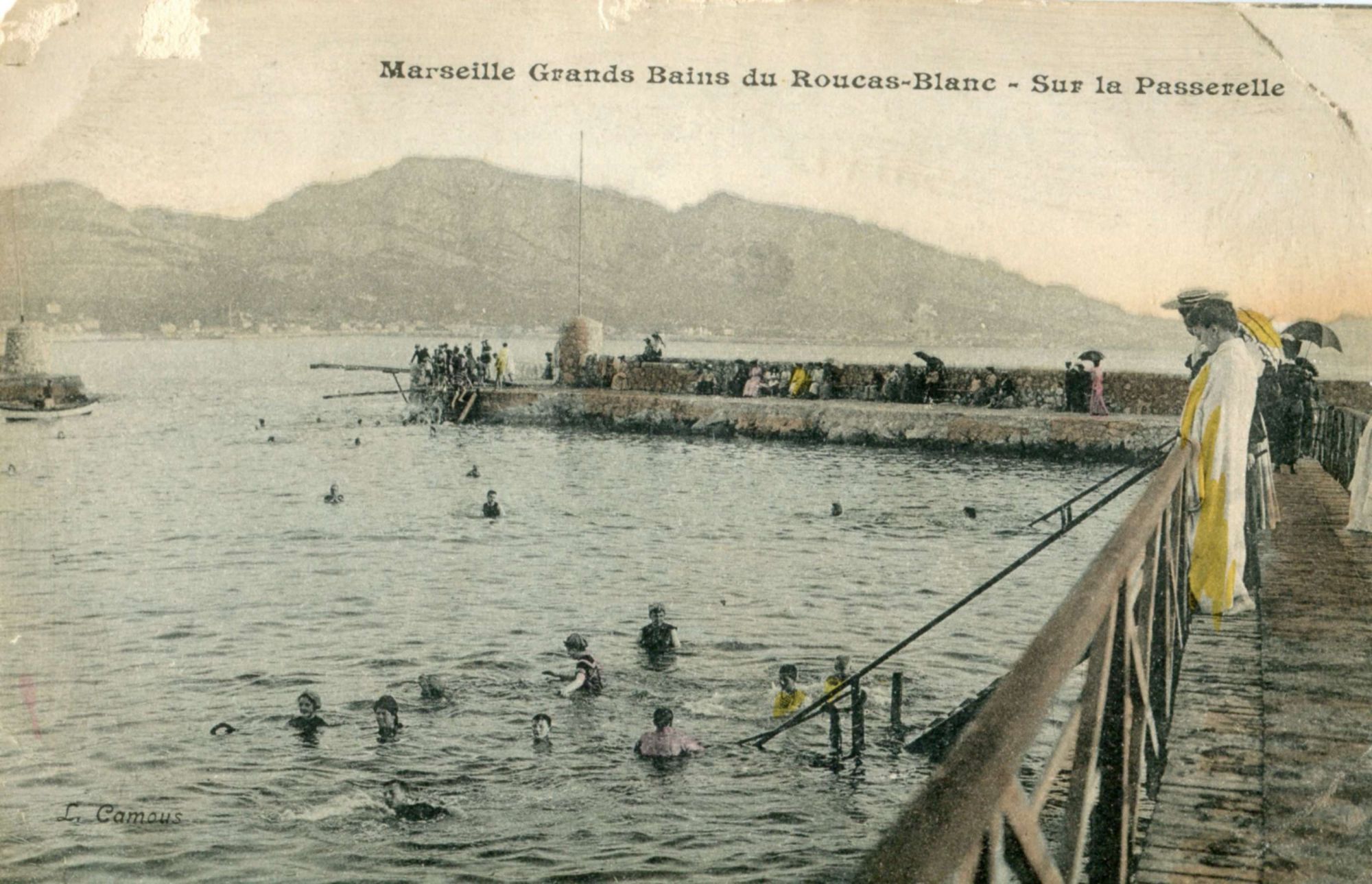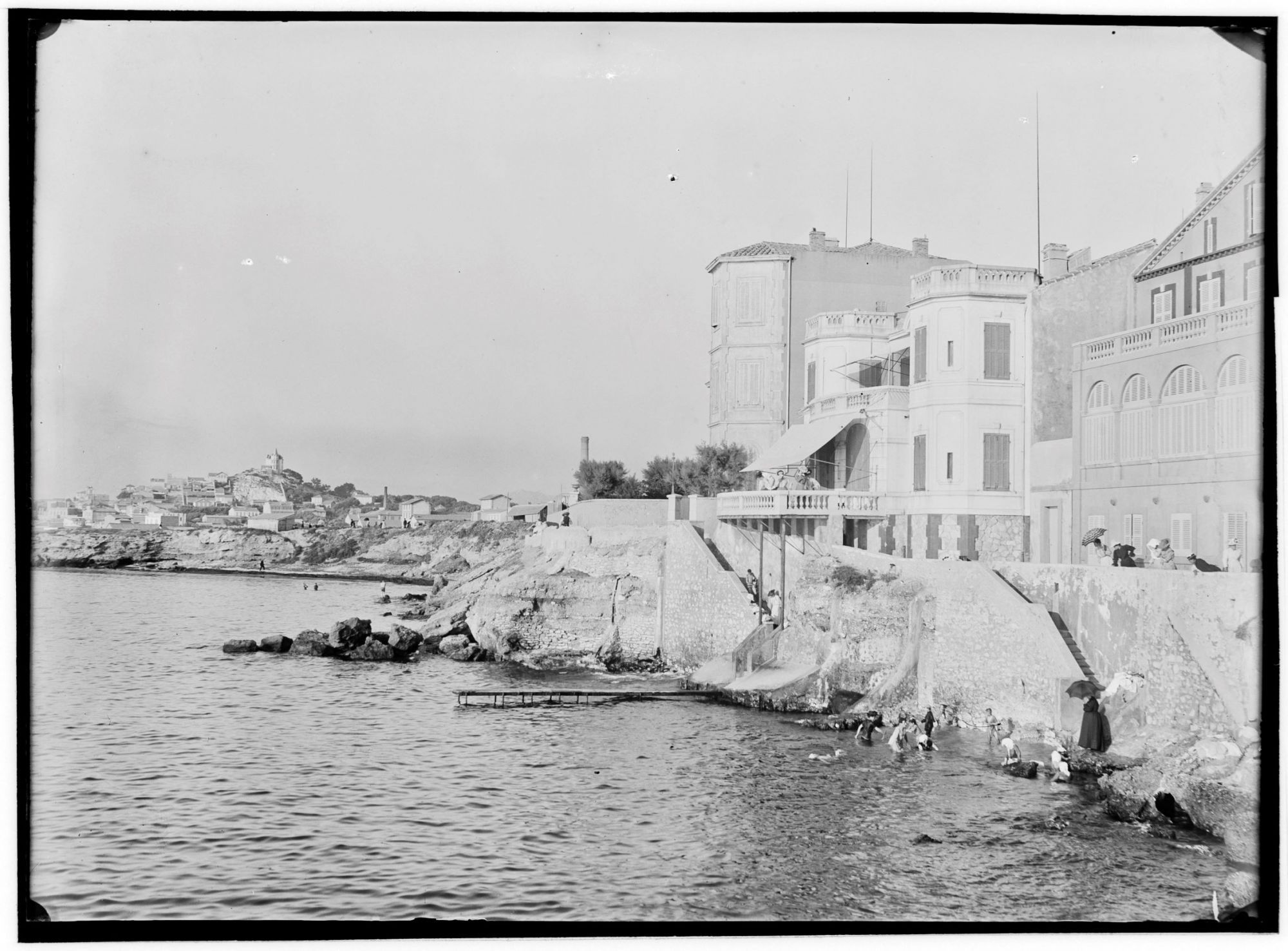 Depuis les rochers des anses et petites criques des calanques ou du bord des plages de Bonneveine, du Prophète ou des Catalans, les Marseillais ne manquent pas d'accès à la mer, en tant que lieu de loisirs. Et ils ne s'en privent pas ! Les nombreuses vues de promenade, pêche ou excursion et pique-nique en hiver et de baignade en été, présentes dans les divers fonds iconographiques des Archives, en témoignent, tout en marquant, au-delà de l'évolution des moeurs et des coutumes vestimentaires, une certaine pérennité et constance des modes, usages et lieux de fréquentation : en famille sur les plages du Prophète et de Bonneveine, entre amis dans les calanques et pour faire de fols plongeons dans la passe du Vieux-Port !