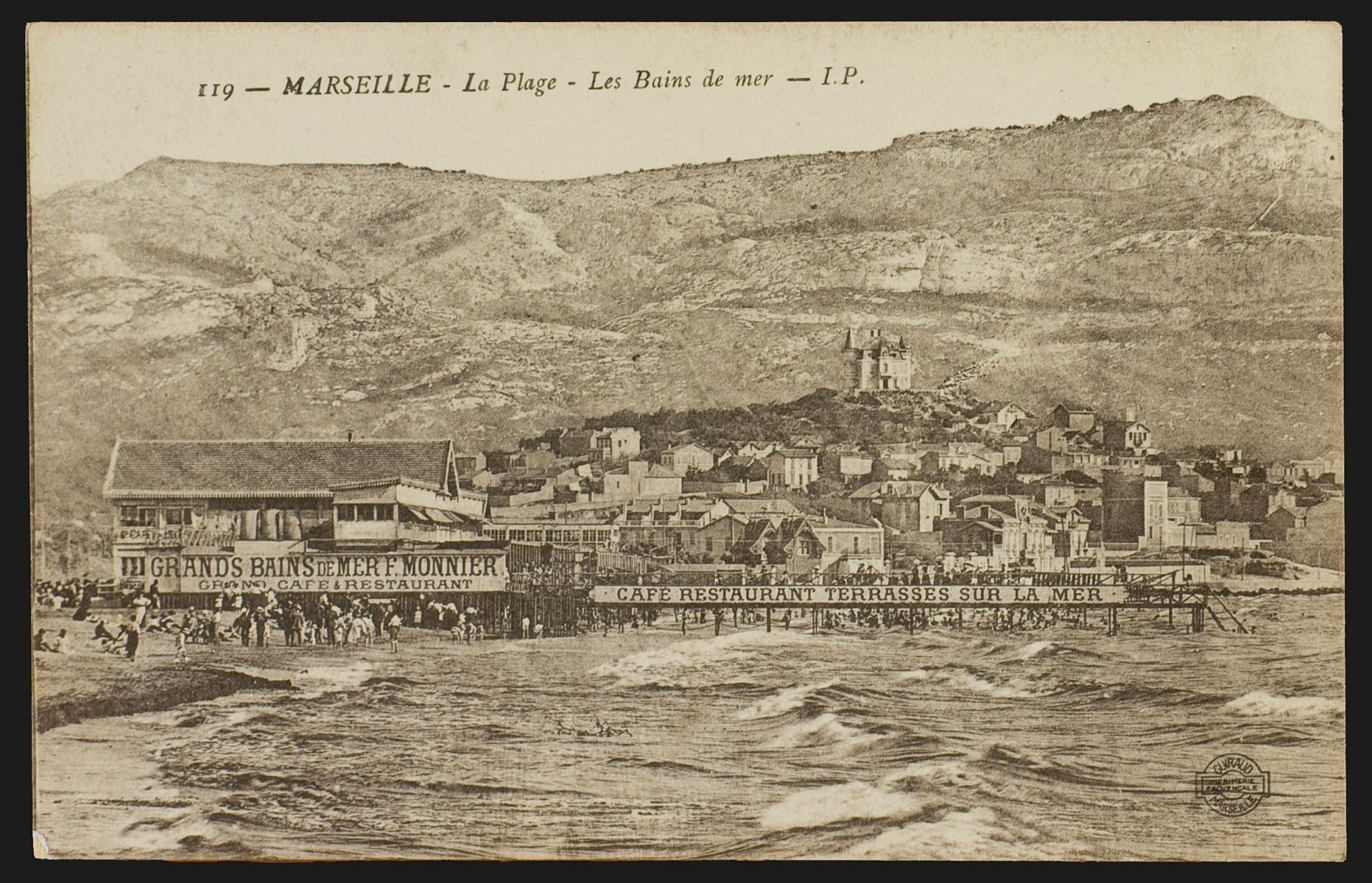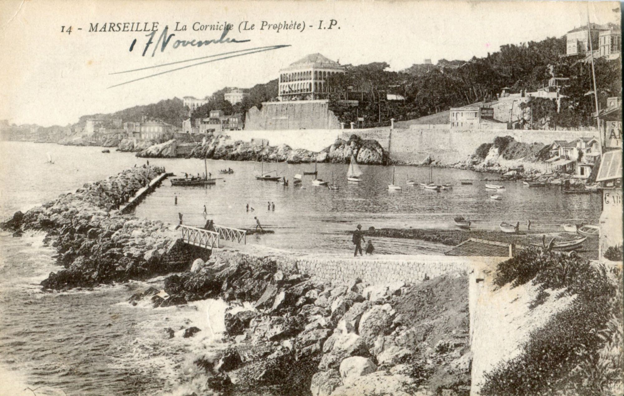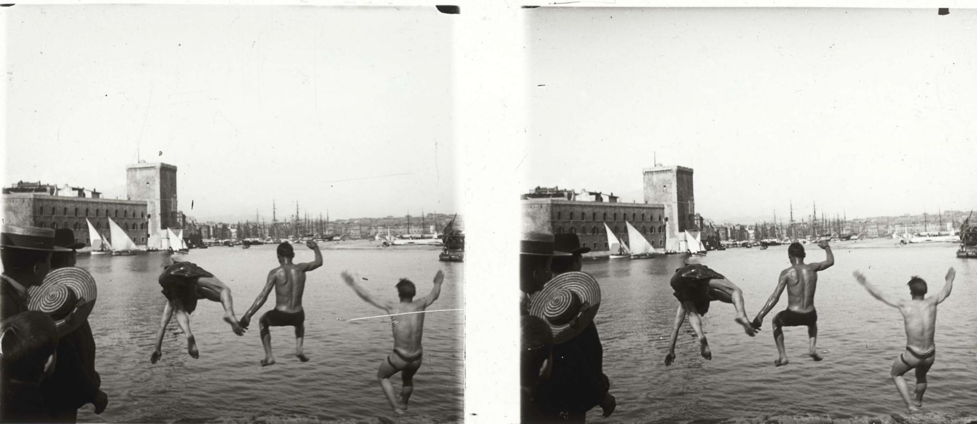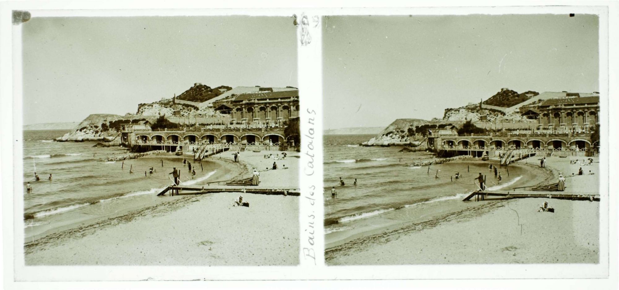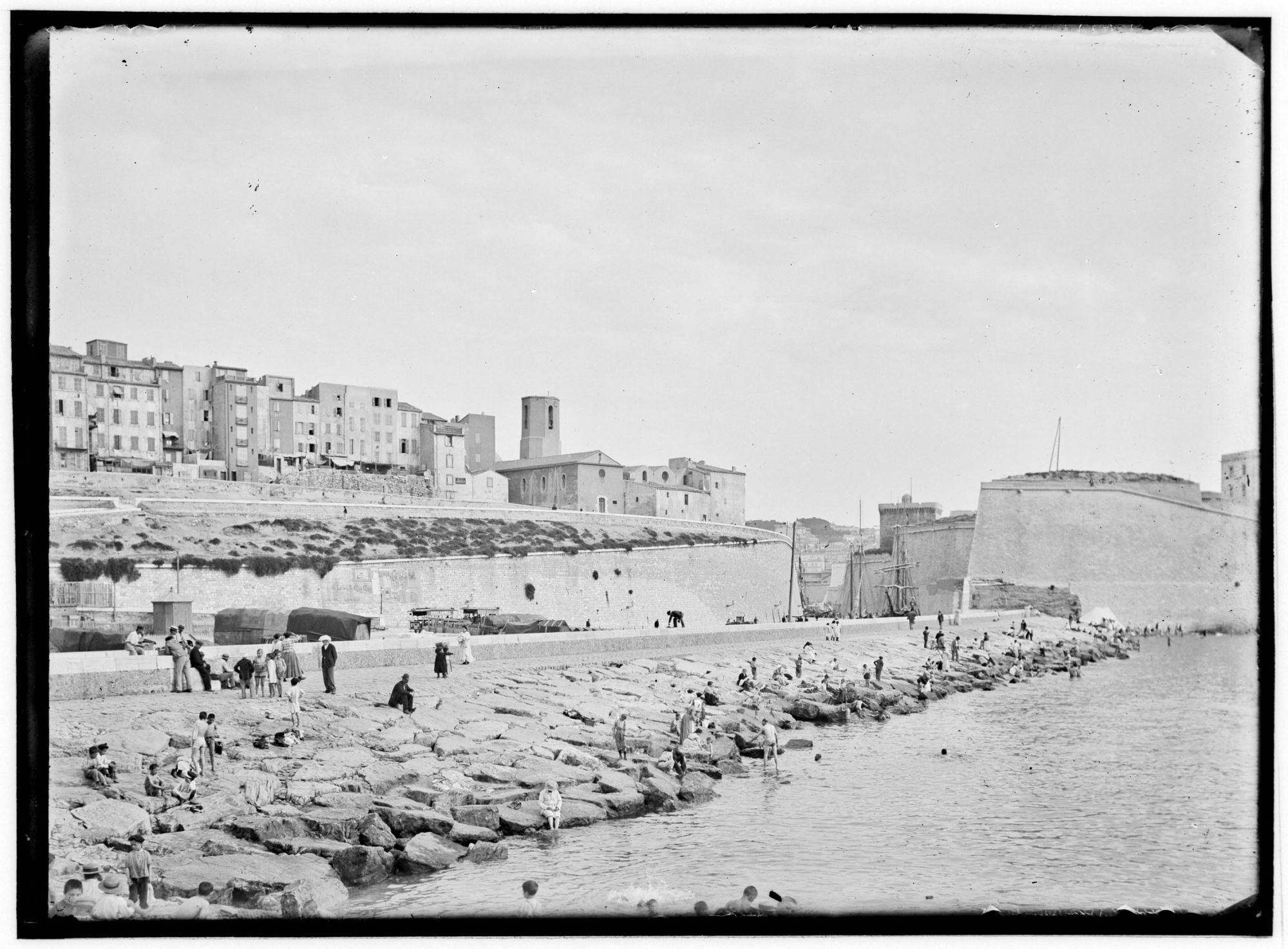 Depuis les rochers des anses et petites criques des calanques ou du bord des plages de Bonneveine, du Prophète ou des Catalans, les Marseillais ne manquent pas d'accès à la mer, en tant que lieu de loisirs. Et ils ne s'en privent pas ! Les nombreuses vues de promenade, pêche ou excursion et pique-nique en hiver et de baignade en été, présentes dans les divers fonds iconographiques des Archives, en témoignent, tout en marquant, au-delà de l'évolution des moeurs et des coutumes vestimentaires, une certaine pérennité et constance des modes, usages et lieux de fréquentation : en famille sur les plages du Prophète et de Bonneveine, entre amis dans les calanques et pour faire de fols plongeons dans la passe du Vieux-Port !